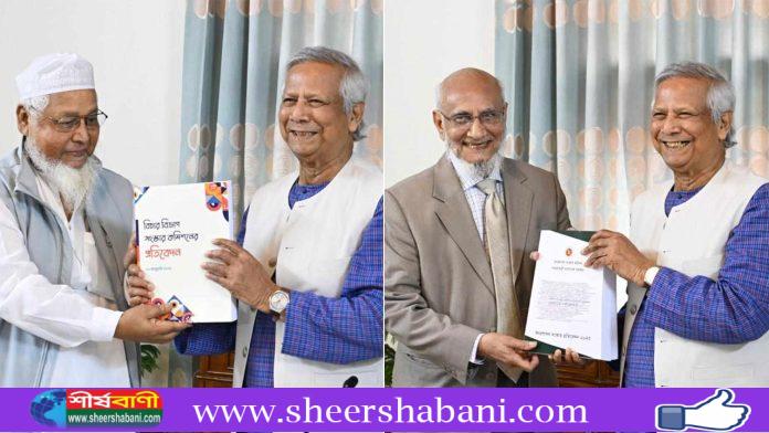 রাষ্ট্রীয় অতিথি ভবন যমুনায় বিচারবিভাগ সংস্কার কমিশনের প্রধান সাবেক বিচারপতি শাহ আবু নাঈম মমিনুর রহমান ও জনপ্রশাসন সংস্কার কমিশনের প্রধান আব্দুল মুয়ীদ চৌধুরী প্রতিবেদনগুলো হস্তান্তর করেন।