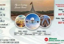 আগামী ২৯ জানুয়ারি থেকে ঢাকা-করাচি-ঢাকা রুটে আন্তর্জাতিক ফ্লাইট পরিচালনা শুরু করতে যাচ্ছে জাতীয় পতাকাবাহী সংস্থা বিমান বাংলাদেশ এয়ারলাইন্স। প্রাথমিকভাবে সপ্তাহে ২ দিন বৃহস্পতি ও...